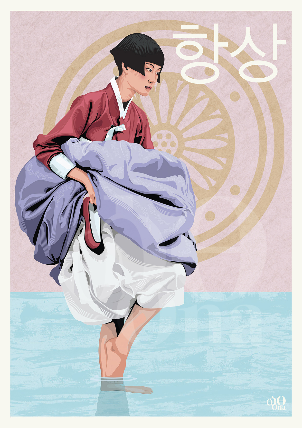 Fashion Illustration referencing Vogue Korea's 2008 series 'Full Moon Story' by renowned fashion photographer, Kim Kyung Soo featuring the traditional Korean costume (Hanbok)
